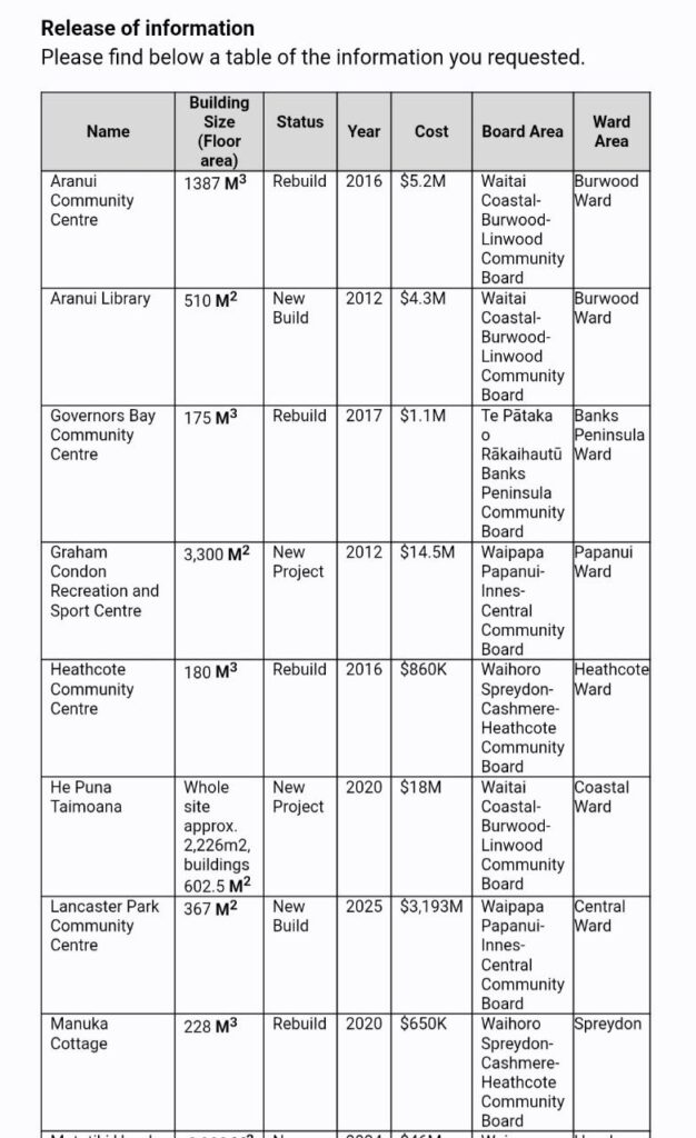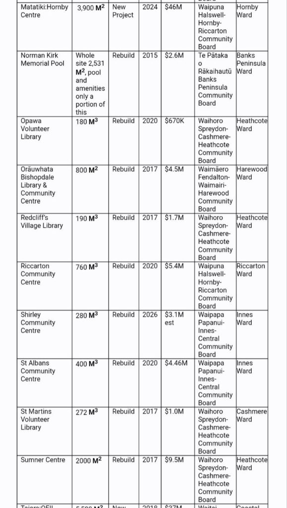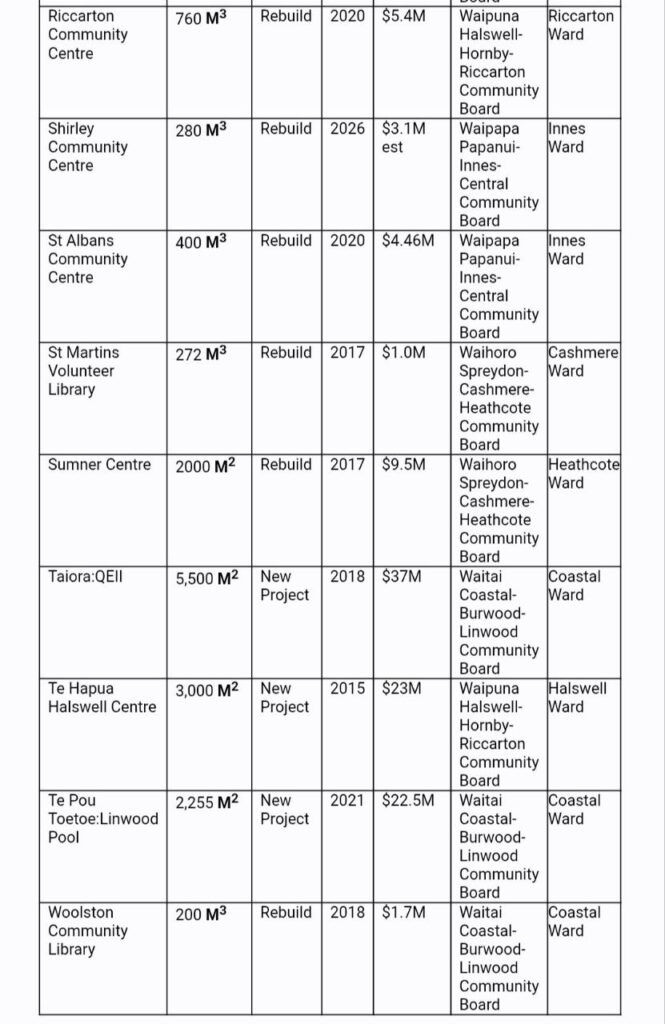 (Not Major Facilities like Tūranga, Parakiore etc).”